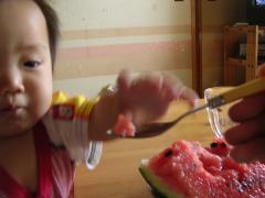 三男たんスイカおいしそう・・。そろそろ梨がお手ごろ価格になるわね!きっと梨も気に入ってくれそうな よ・か・んがするわ