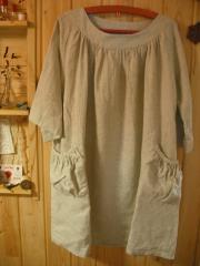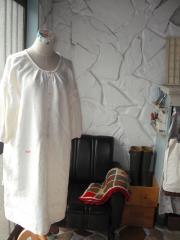 厚手の白いリネンで作ったので、どこかアンティークのワンピースのような雰囲気です。