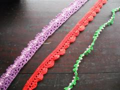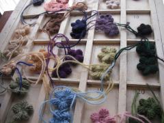 細いレース糸や、ウールの毛糸で、モチーフやブレードをアミアミ。