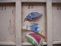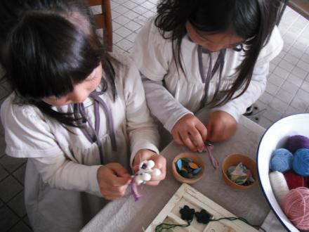 かわいい双子ちゃん(6歳)糸を通すのも、針の扱いもとっても上手!双子ちゃんだからかしら、二人とも紫とピンクのお花を選びましたが、微妙にトーンの違う選択。個性が表れていました