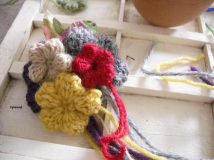 1 年生のRちゃん、長~い鎖編みをがんばって3本もあんで、ゴージャスなゴムもできました。写真がないのが残念。鎖編みのお花もいいな♪と、新たな創作意欲をわけてもらいました。