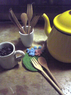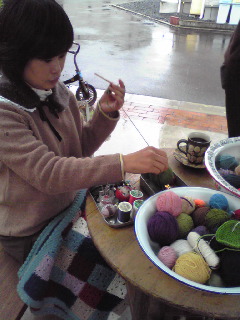 マレタケ荘は、毛糸やら、チロリアンテープやらを並べてカフェタイムにお似合いのコースターやらおやつマットをアミアミしようかと^^