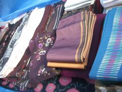 ゴワっとした布がギュ~っと寄る感じが好きで、ワンピースに仕立てる事が多いです。