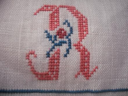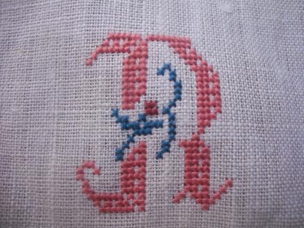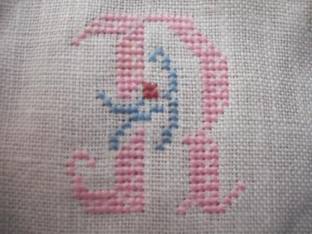 コレは少し前にキャミエプロンに刺したイニシャルです。