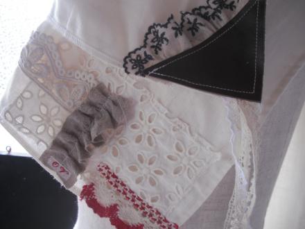 レースのはぎれ、端革をコラージュしたダブルガーゼのストール。