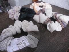 端切れに半端なレースやテープ。色々組み合わせると新しい作品になります。