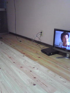 床に塗ったワックスは蜜蝋と油と好みのエッセンシャルオイルで作った物です。