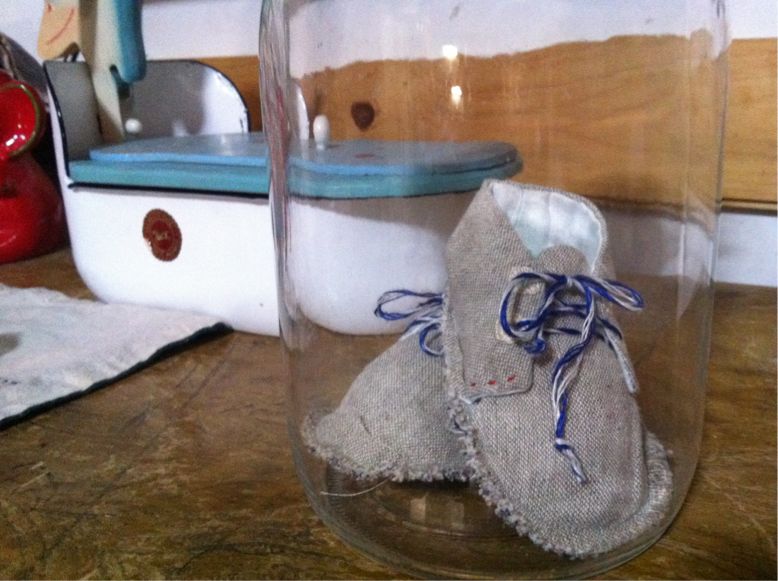 三男が生まれた時に作ったベビーシューズをビンに入れてみました。
