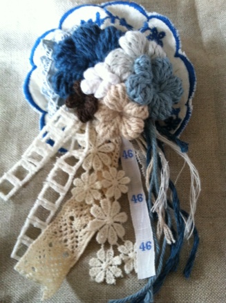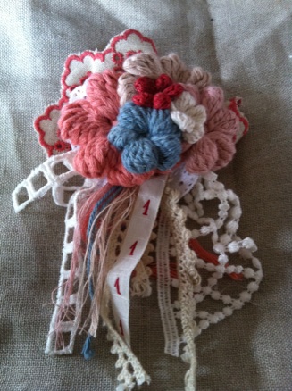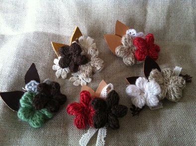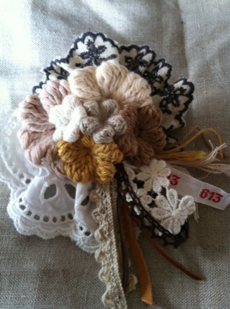 コサージュはどれも、リネン、コットン、ラミーコットンの糸。