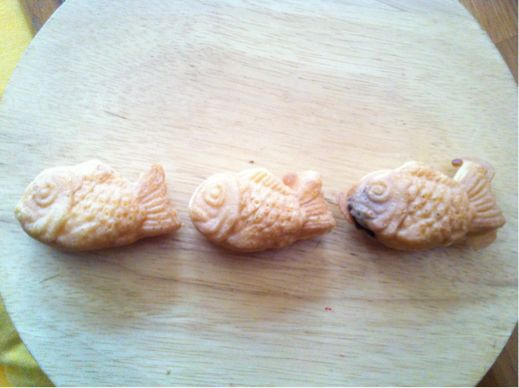 中に、チョコクリーム、カスタードクリーム、キャラメルクリームがはいってます。