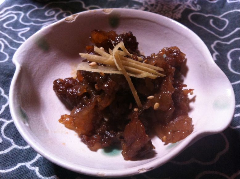 酒、みりん、しょうゆ、生姜のみじん切り。(今年はみりんきらしてて、砂糖をいれました)