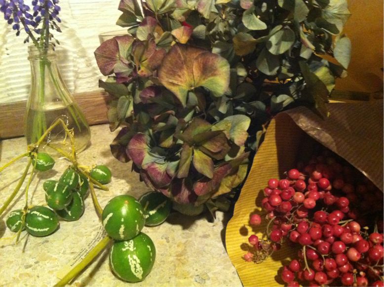 コハルさんで買った、ドライのアジサイと、、、なんだっけ??