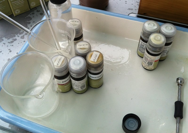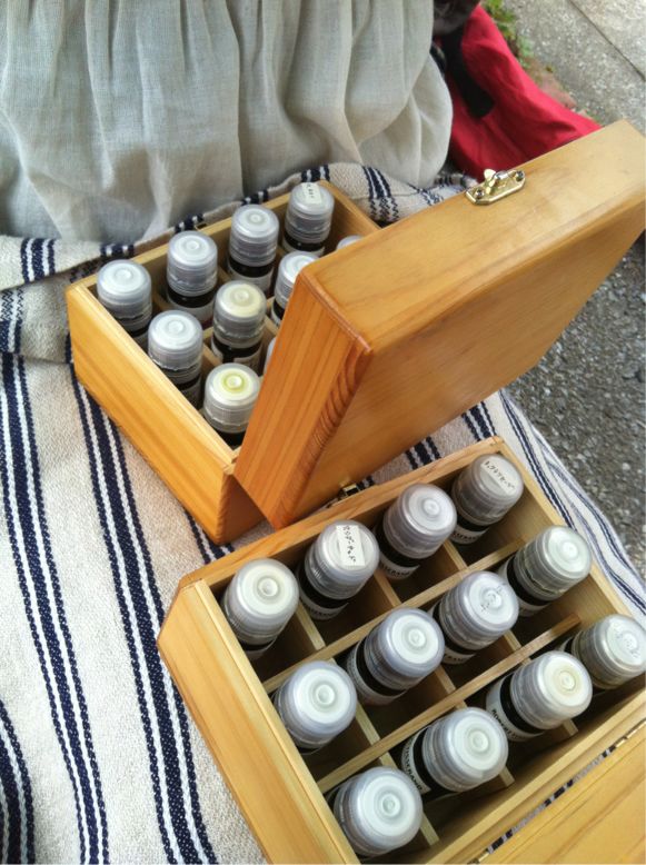 マッサージに使ったオイルをブレンドしてお持ち帰りできます。