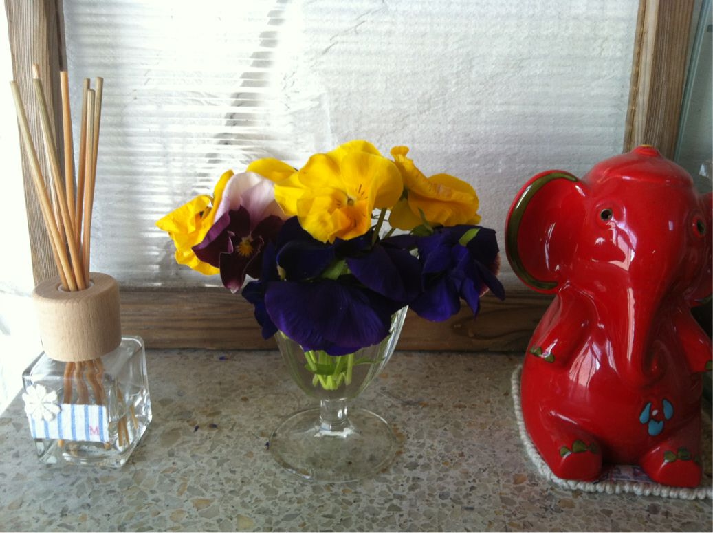 1年生が花壇で摘んだ母の日のお花。