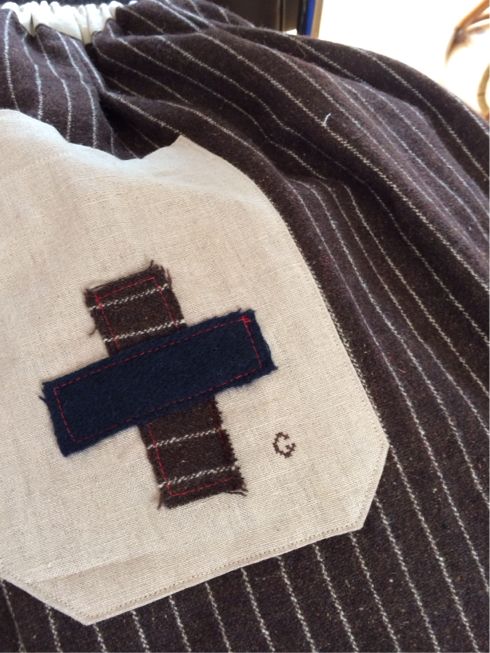 それとね、イニシャルをお入れするとお受けしていないお洋服にはタグとかポッケにコッソリイニシャルステッチしてあります(*´艸`)
