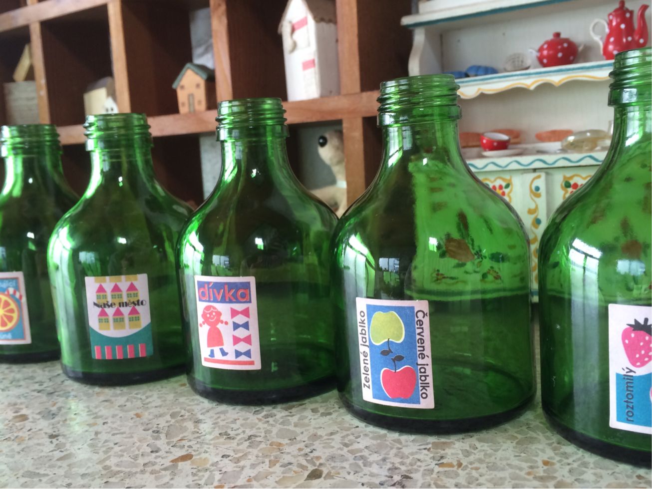 中身をすすいでラベルはがして水をきってたらグリーンの小さいビンが妙に可愛くみえてしまい・・・