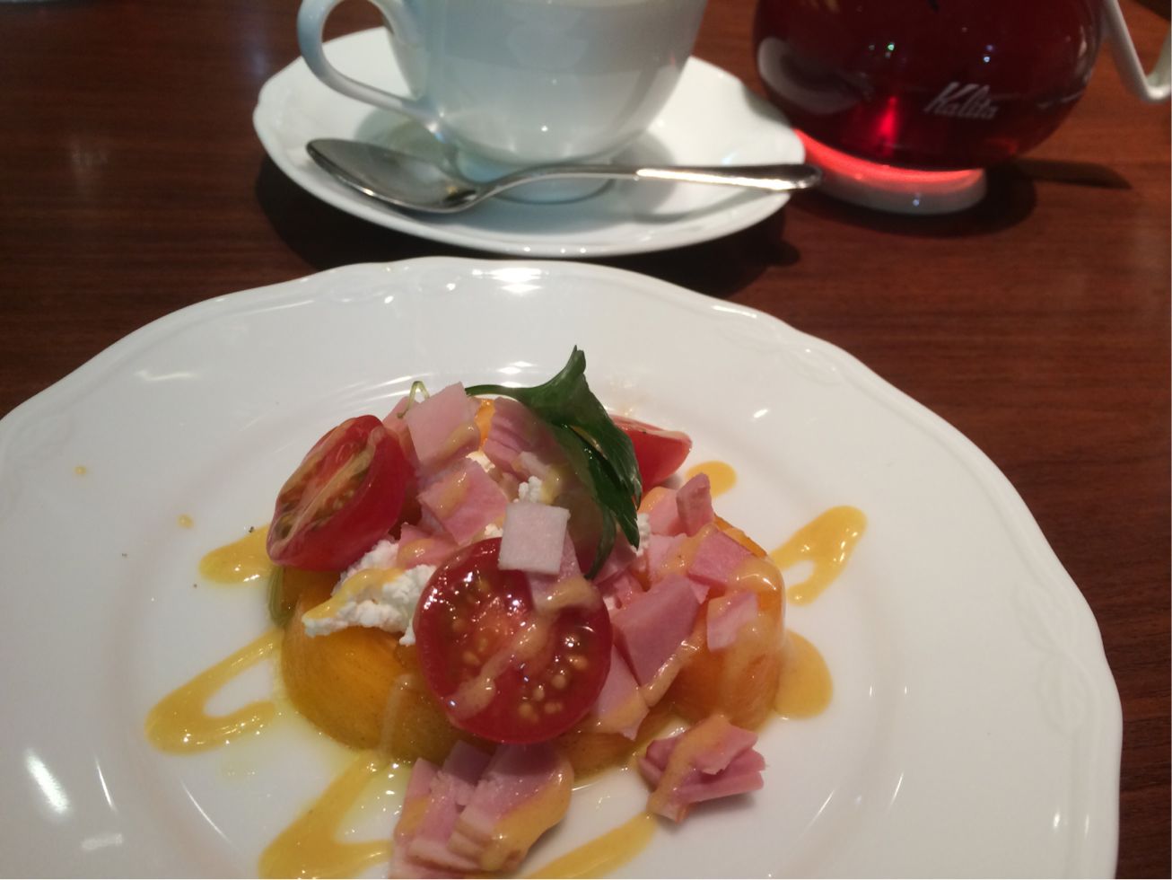 千疋屋の柿とカッテージチーズとハムのサラダ