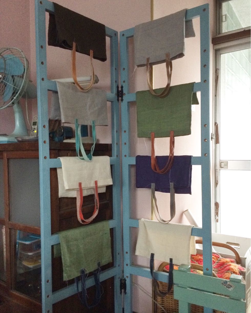 リネンとカラフルなレザーの