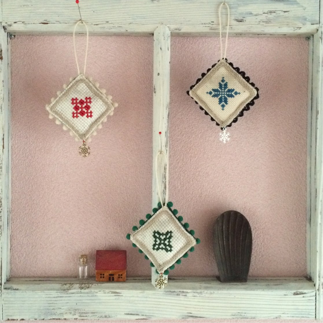 雪の結晶をクロスステッチして