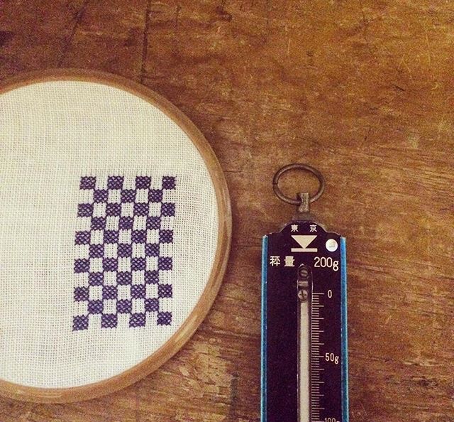 藍色の糸と市松模様