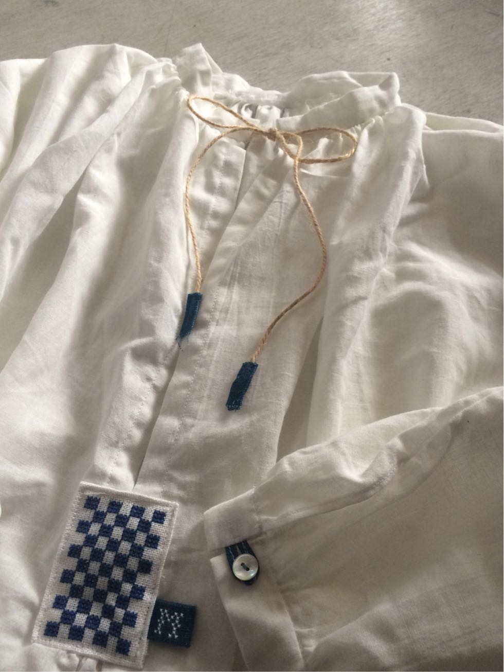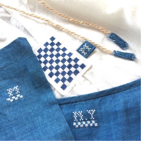 麻ひもの先にも藍染リネンをちょこっと
