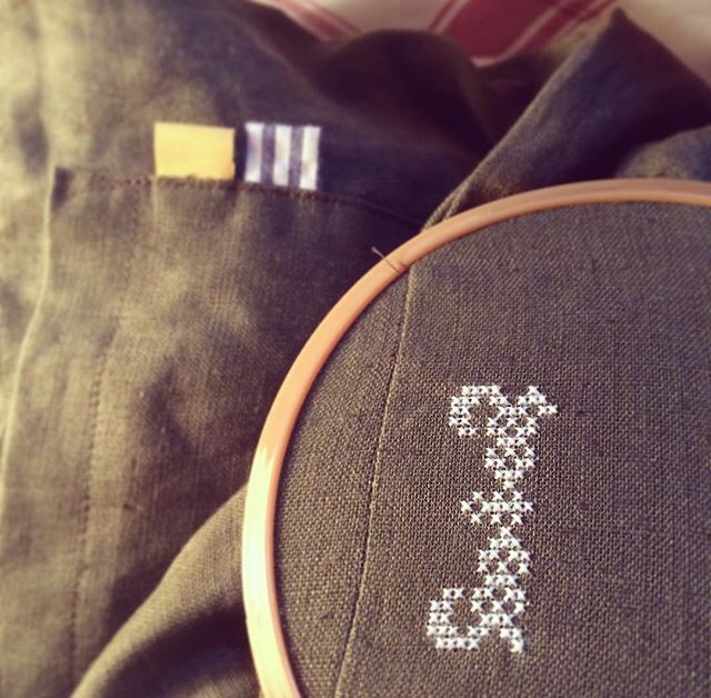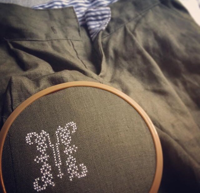 お好きなイニシャルをステッチしてチクチクチクチク...