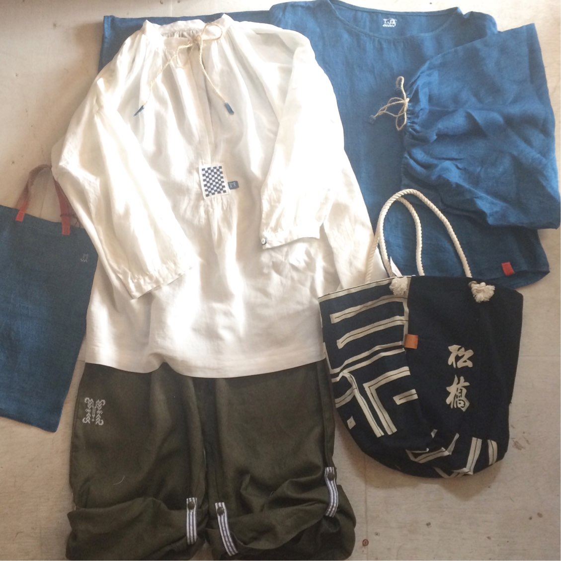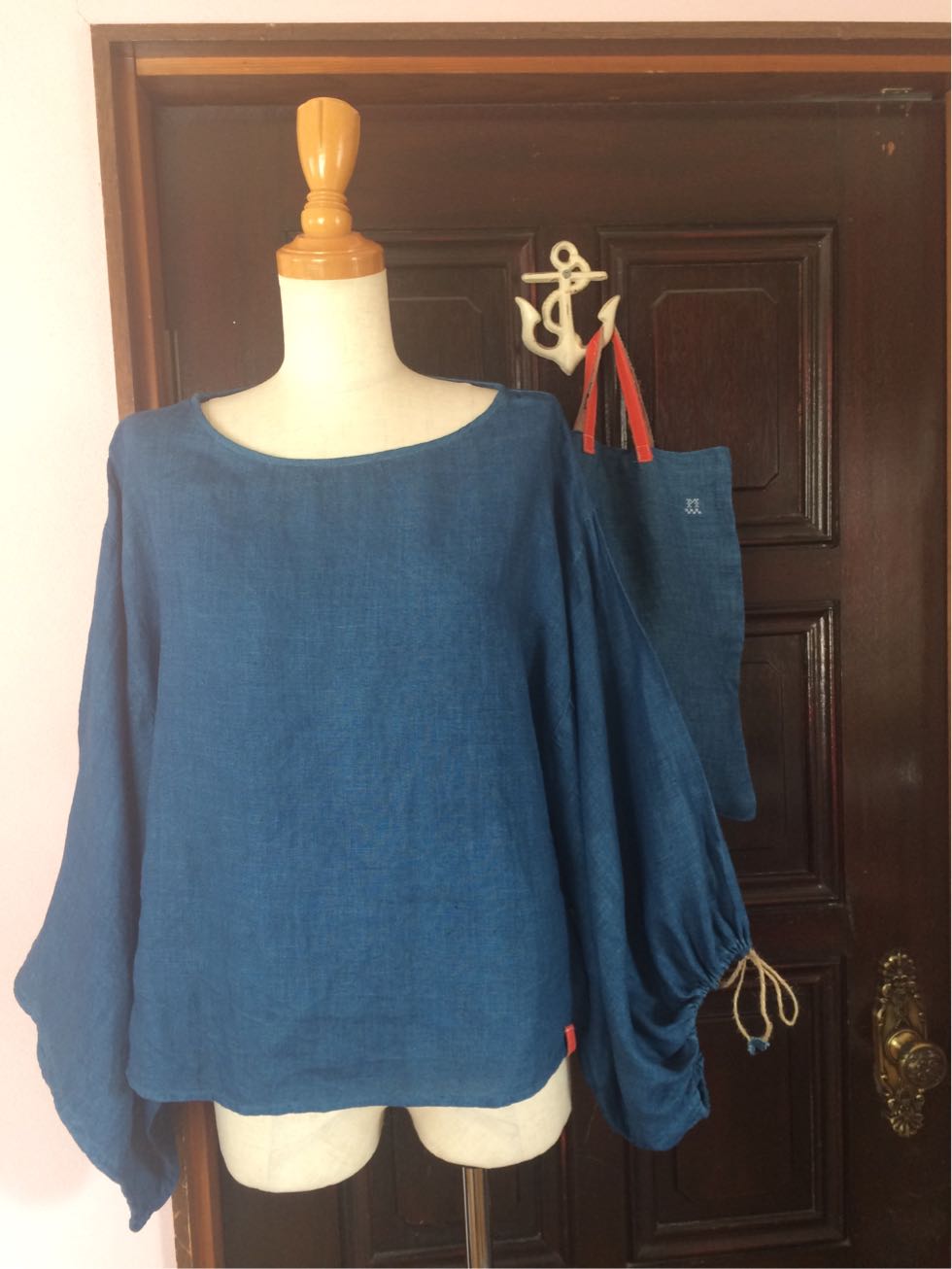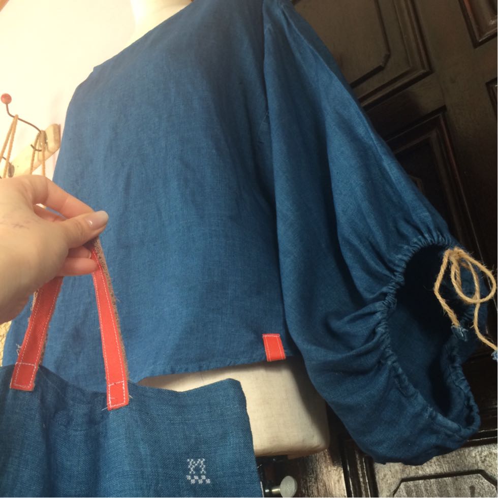 袖と背中には藍染リネン