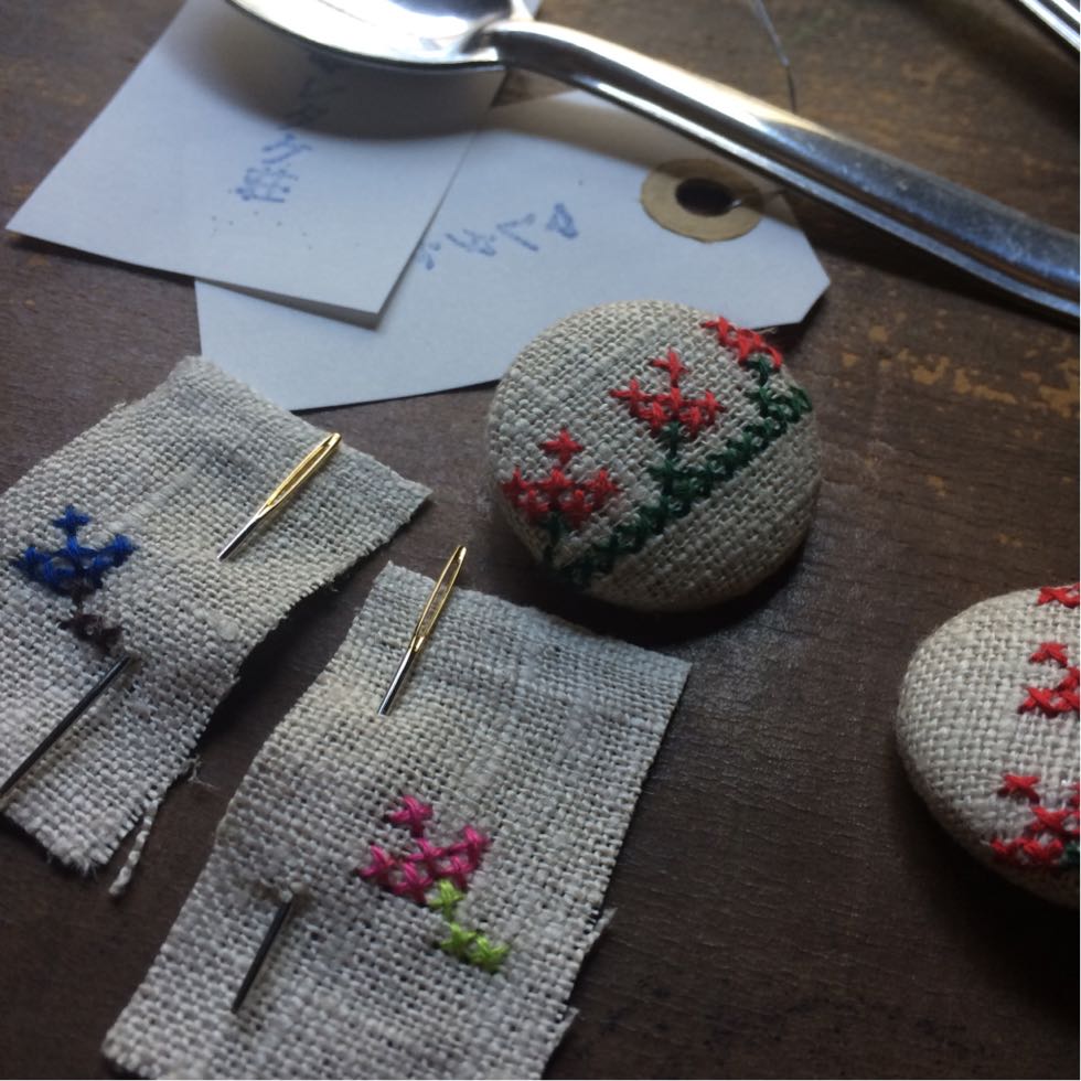 今回は同じステッチのくるみボタンとおうちでカフェごっこで遊べるようにアルミのスプーンがオマケです