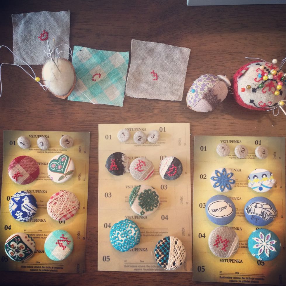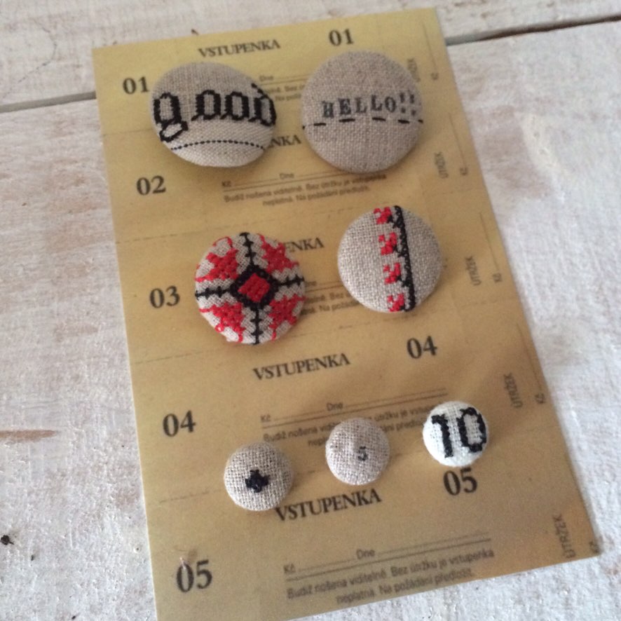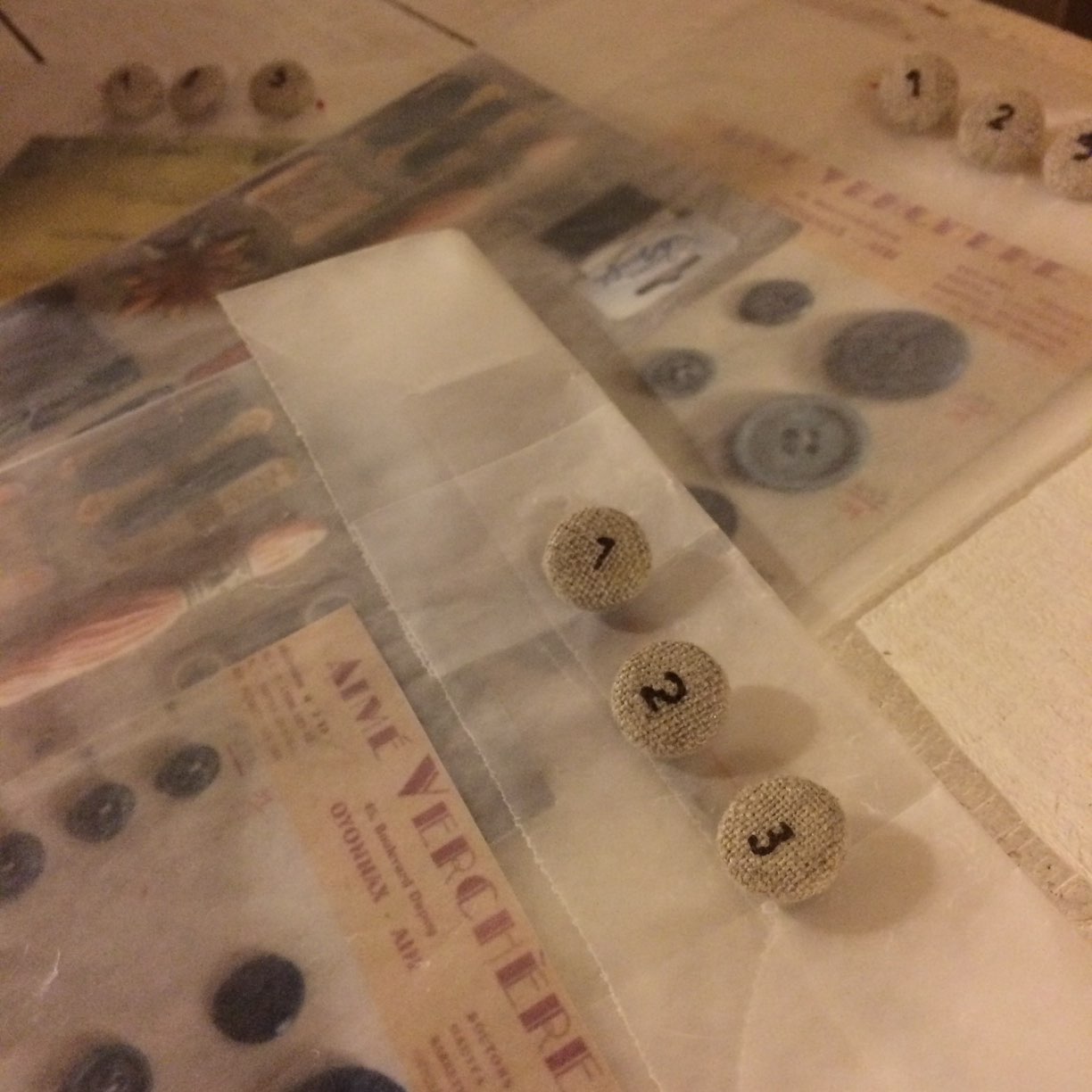 台紙に自分で作ったくるみボタンを縫い付けてシートを作る...