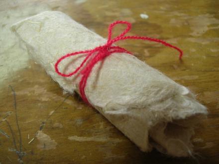 巻物です。幼稚園の行事で作った手すきの和紙がいい味をだしてます。