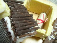 クッキーのおうちですが、屋根に貼ったチョコの重みで、もう少しで完成!!と言うところで倒壊してしまうアクシデントが・・・
