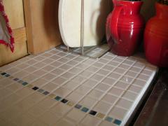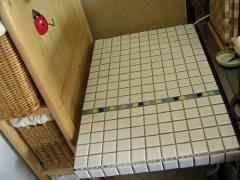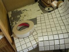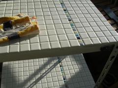 何をしようとしたか、サッパリ忘れてしまいましたが、ホームセンターで買ったタイルが大量にあったので、タイルを貼ってみることに。