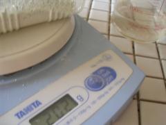 目地材の袋には200グラムの目地材に60~65ccの水で練る。