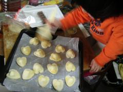 ハートに抜いた残りを長男に預けたら、色々な抜き型でこんなのできました。