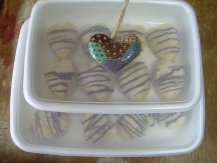 冷凍パイシートにチョコをはさんで、チョコパイと、スコーンのチョコがけ。