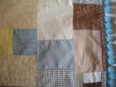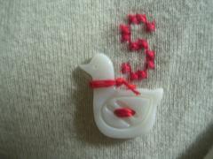 やっぱりちょっと寂しいので、こちらもイニシャルとシェルボタンを赤糸でチクチク。