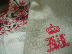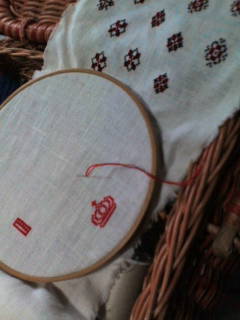 イニシャルと、王冠をクロスステッチで刺してみました。