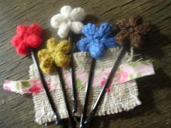 小さな花は刺し子の糸をレース編みのかぎ針で編みました。