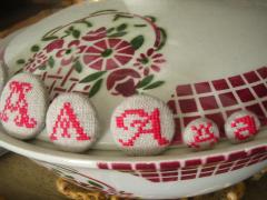 3つずつ、古いフランスの図案の台紙につけました。