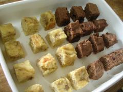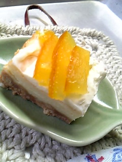 お誕生日のチーズケーキ、3センチ角位の大きさに切りました。
