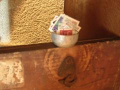 夫の実家の蔵の前に、昔使っていた古い食器棚。