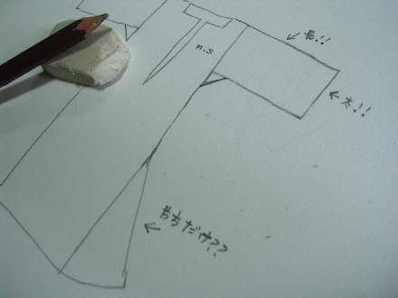 織った幅を半部に折ってそのまま身幅してあって、それだと足が開かないので