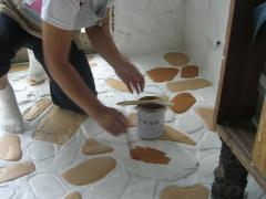 (ゴメンナサイ~)とハサミを入れたり、チクチクと手縫いしていました。