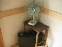 jamさんのイベントで買った古い小さな机と、夫の実家で捨てられそうなところを救出してきたおじいちゃんのトランク。