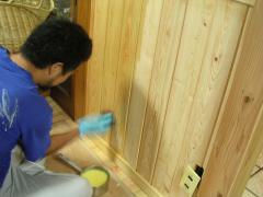 蜜蝋ワックスをヌリヌリしています。
