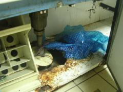琺瑯のシンク、長い間、排水が漏れていたため、錆びてしまってボロボロ・・・