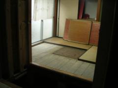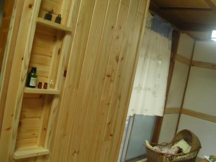 配管を直して、錆びてあなが開いてしまった所は団地で板壁にしていたものを壊して、床にしました。