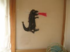 怪獣はストローを吹くと口から出てるビニールの赤い炎がファ~っと揺れます^^。足は可動式。