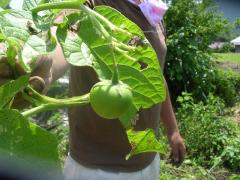 ジャガイモの花が落ちるとまるでトマトそっくりの実がなるんですって。
