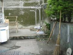 晴れてる日はホースで、せっせと苔に水やりをしています。
